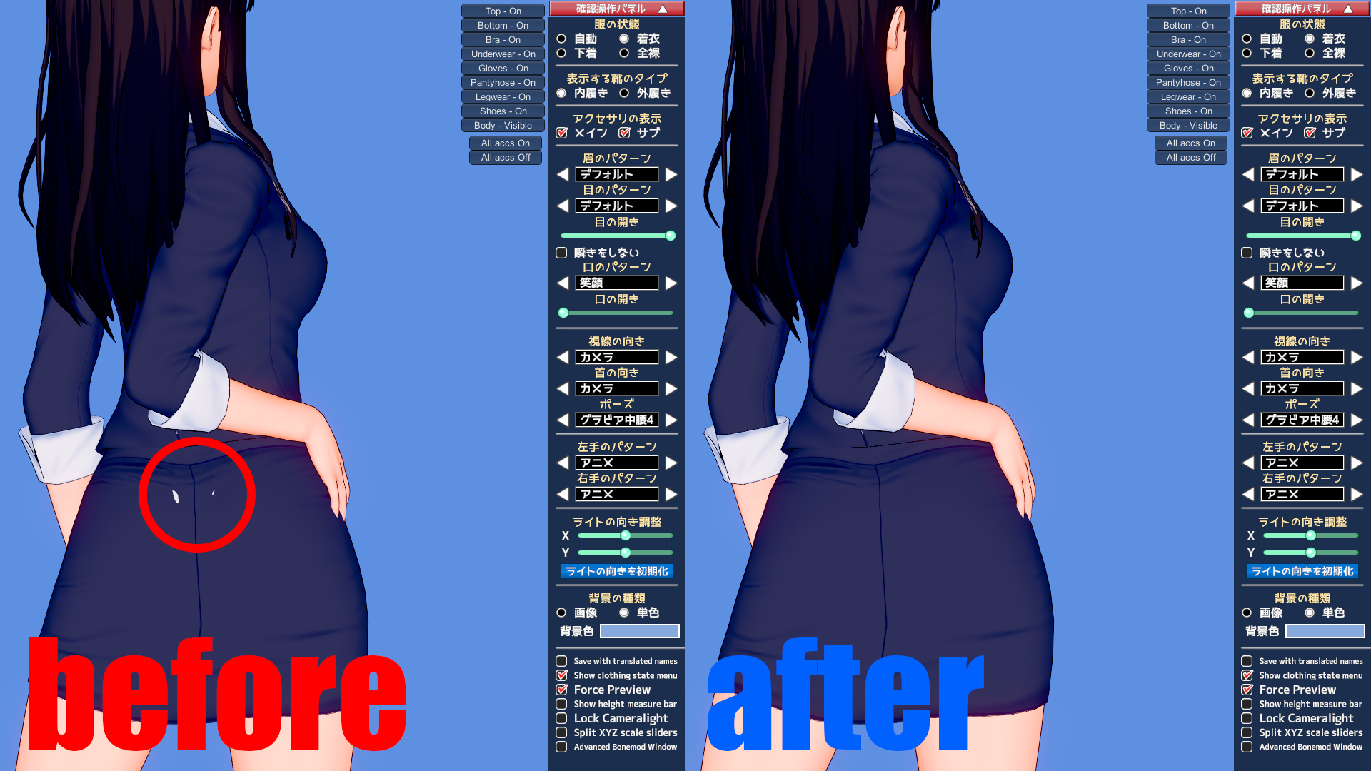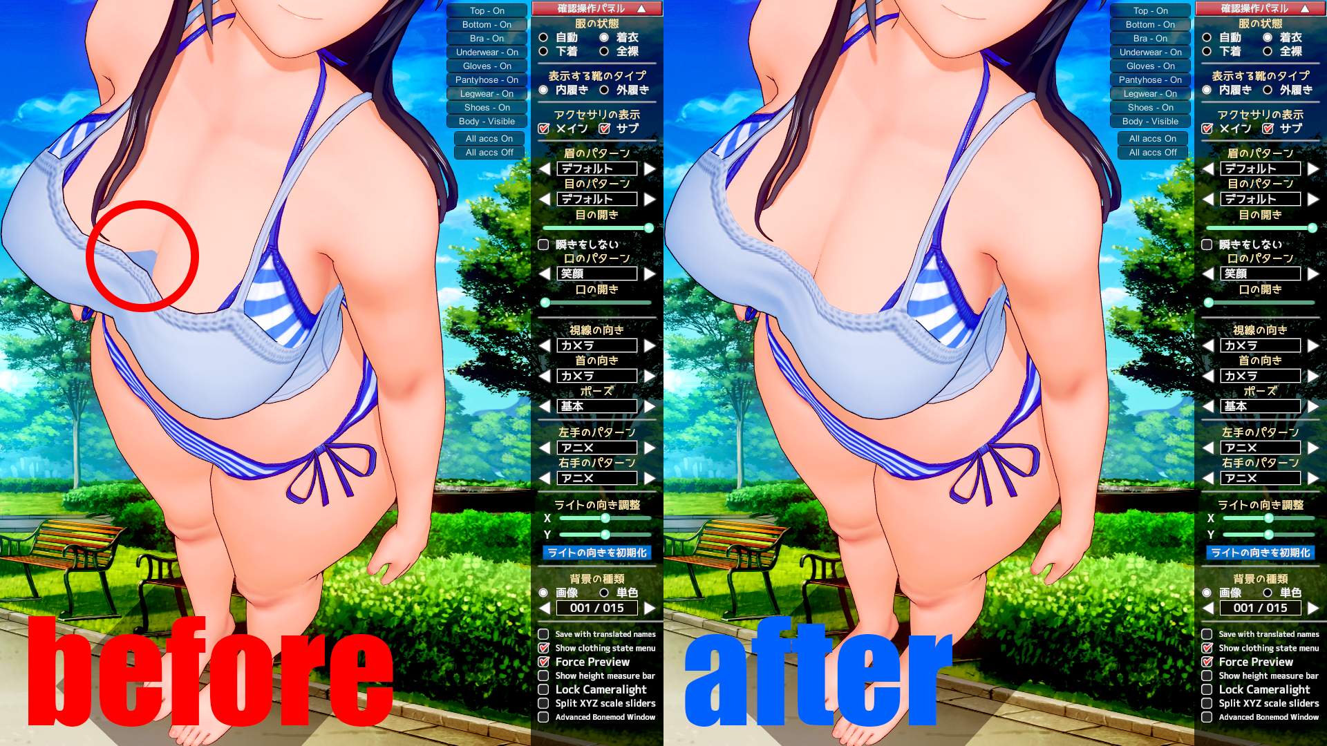 うちの黒ギャル様が装備しているztokki氏のはみげるパンツが微妙に浮いてるが気になって、ボディタイツを移植して食い込ませてみたら、みんなそう思っていた件。