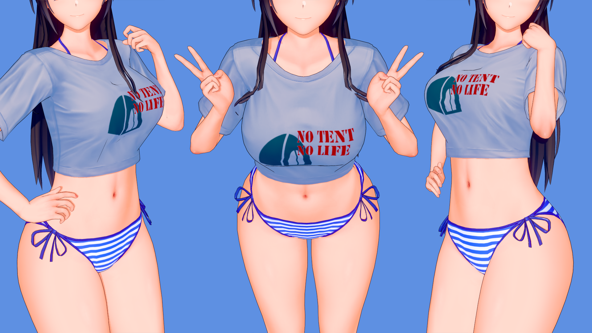 2021年に配布した乳テントシリーズのアップデート。BlendShapeを初めて導入して、透け透け時の貫通問題に対応してみました。サンシャインのデフォルトシェーダーが優秀なので当初はサンシャイン専用で配布しましたが、界隈、半分くらい無印派でしたので無印版も急遽作成。センシティブ判定が厳しくてツイッターにアップするのが大変でした。