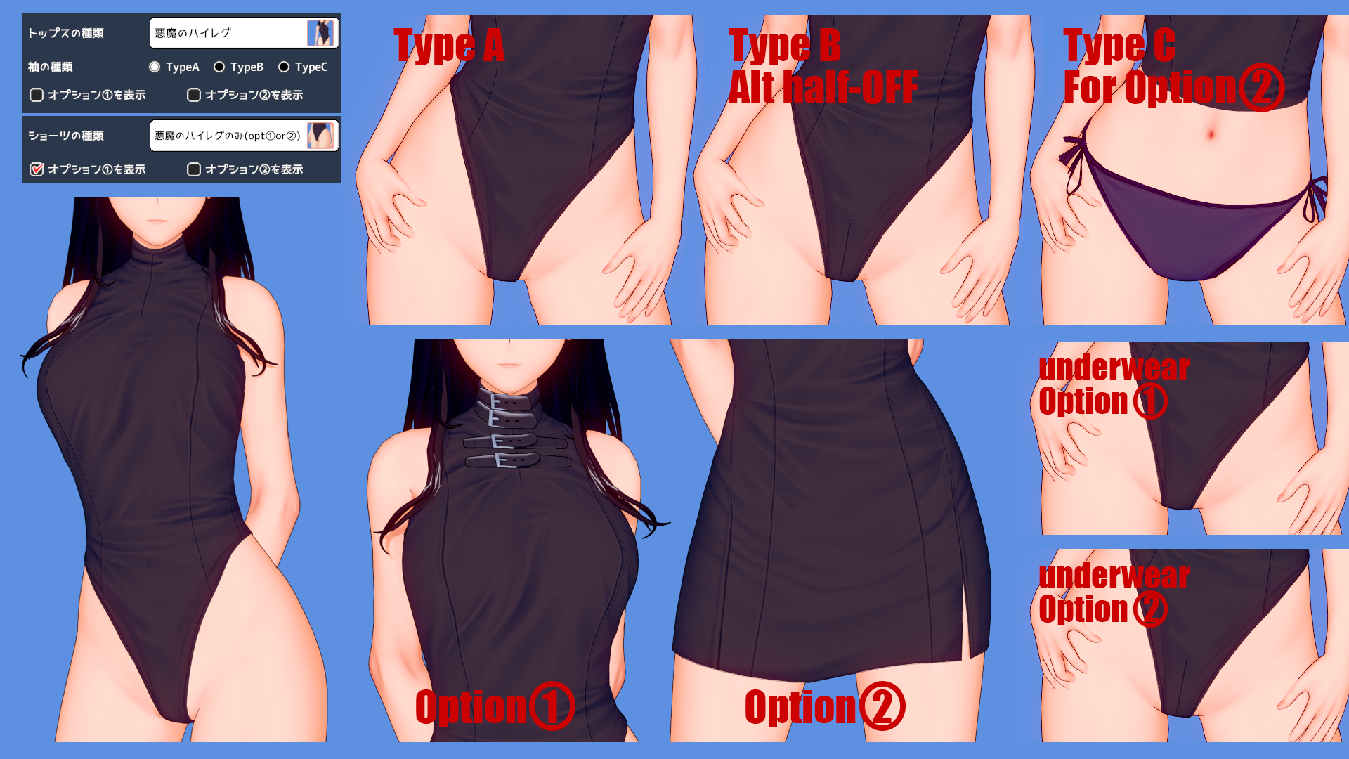 あと、ハイレグのお尻がパススト系と干渉するので、ハイレグ対応した網タイツも追加リリース。地味に難産😅