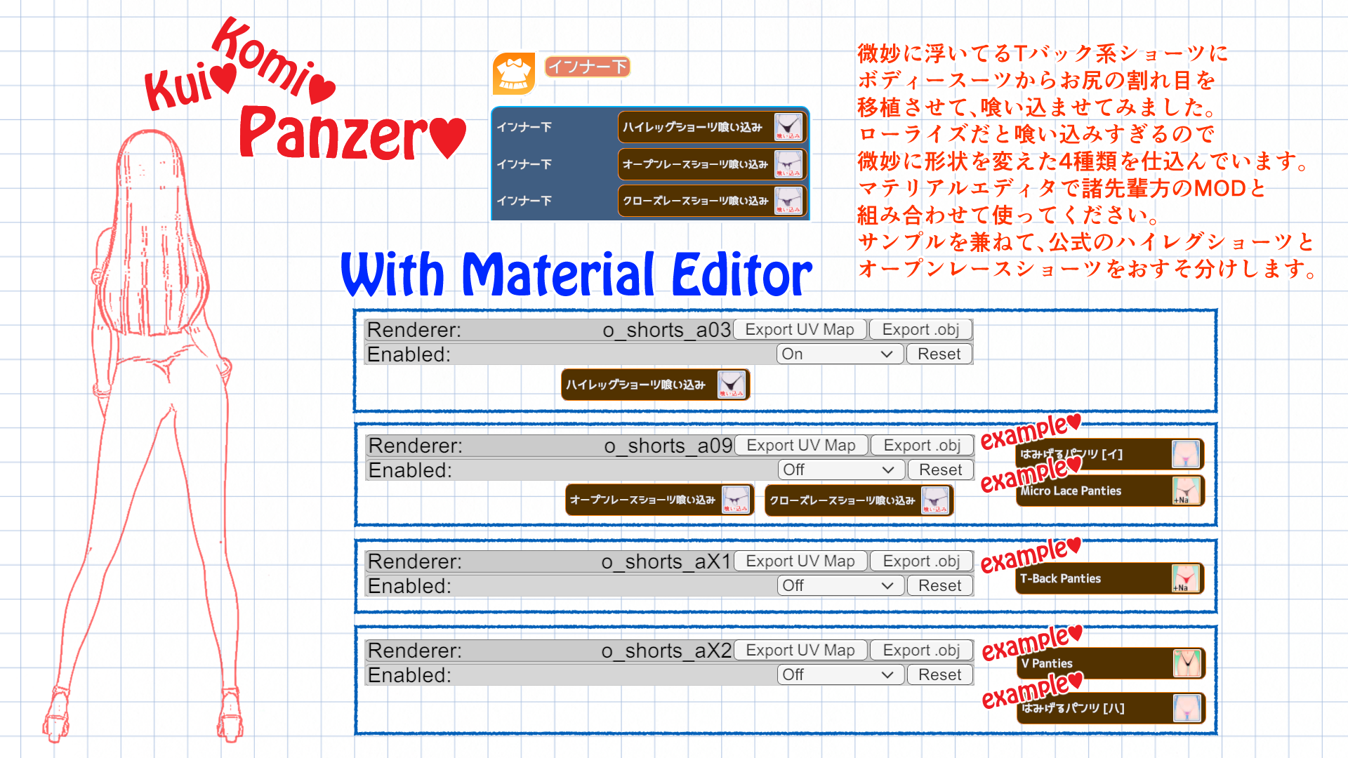 試作品で色々使ってもらって、感謝です。モーモちゃんはMirriさんご提供。nakayさんの神MODをヒントに透けT版も追加。SDはtkgさんよりアレンジ。