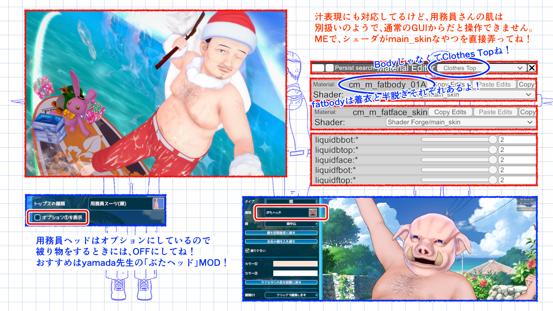 ギミック満載。ある意味、これまでの集大成のMODでした。きっかけは兎年なことと。とある漫画でバニー衣装をつくるのにあたり、ペロンとならないことが発覚した話です。ちょいちょいアップロードしたファイルに間違いがあった最終版はXmasパックに入っているやつです。