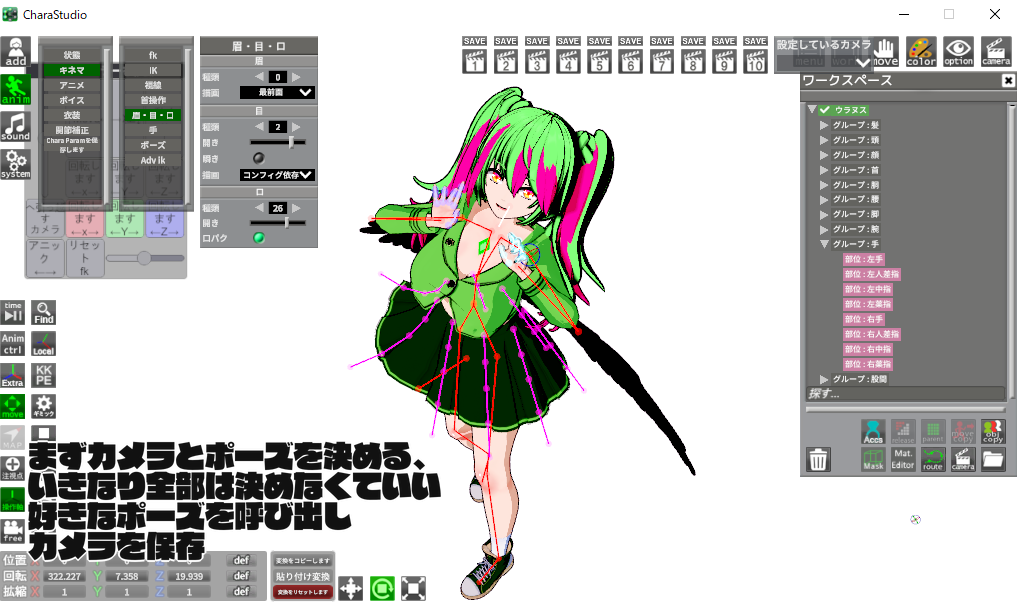 それでポーズ決める、プリセットのポーズを読み込むでも