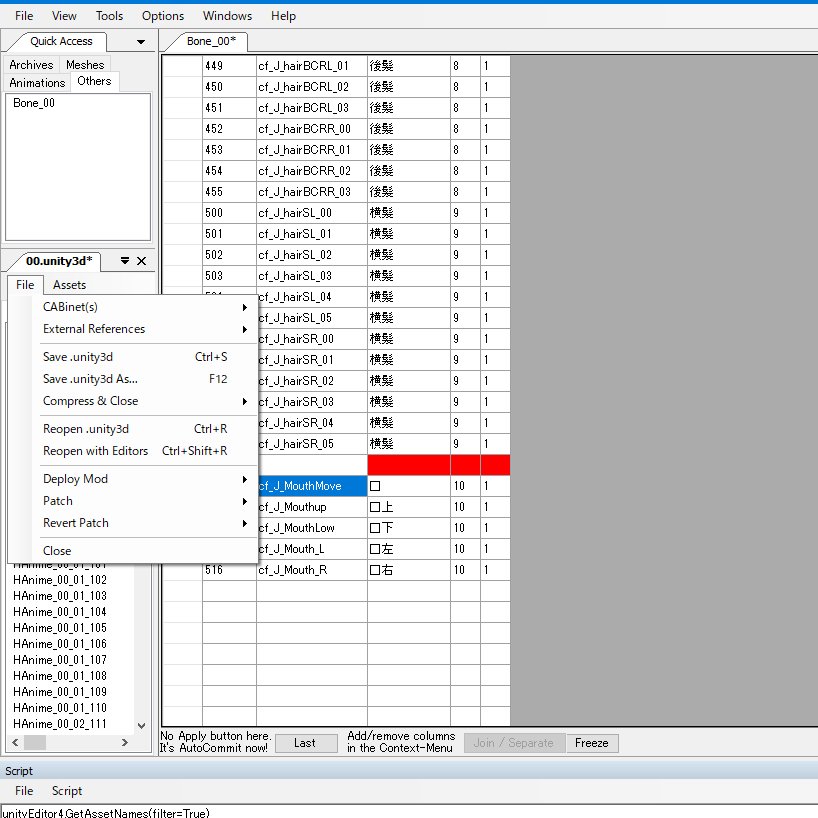上記図、左記のカーソルリストからBone_00を選択しましょう